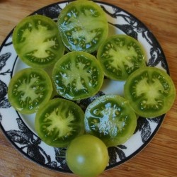 De kleinste tomaatjes in ons sortiment noemen we kerstomaatjes of pingpongtomaatjes, naargelang de grootte. Enkele variëteiten zijn langwerpig of hartvormig en krijgen navenant een iets andere benaming. Sommige zijn zelfs oorspronkelijke, wilde soorten. De meesten smaken extra zoet, een enkeling heeft een zoetzure smaak. Kerstomaten liggen het dichtst bij de oorspronkelijke soorten, wellicht daardoor zijn ze o.h.a. beter bestand tegen de gevreesde aardappelziekte. Groen kan ook rijp zijn... dat bewijst deze grote kerstomaat. Velen vinden dit de best smakende groene kerstomaat. Test en geniet van deze éénhappers! De planten worden hoog en geven een redelijke opbrengst.