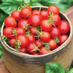 Een ideale tomaat om in een pot of in de tuin (buiten) te kweken, ze worden 60 cm hoog en breed en geven een flinke oogst van lekker zoete vruchtjes, 300 vruchtjes van 1 plant is geen uitzondering!