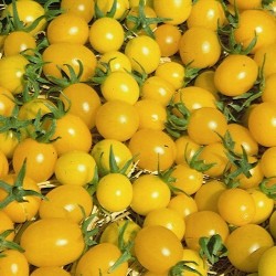 De kleinste tomaatjes in ons sortiment noemen we kerstomaatjes of pingpongtomaatjes, naargelang de grootte. Enkele variƫteiten zijn langwerpig of hartvormig en krijgen navenant een iets andere benaming. Sommige zijn zelfs oorspronkelijke, wilde soorten. De meesten smaken extra zoet, een enkeling heeft een zoetzure smaak. Kerstomaten liggen het dichtst bij de oorspronkelijke soorten, wellicht daardoor zijn ze o.h.a. beter bestand tegen de gevreesde aardappelziekte. Lekker en opvallend bestand tegen de aardappelziekte! De iets ovalen, gele vruchtjes rijpen vroeg aan brede trosjes met 8-20 vruchtjes. De meeste jaren lukt de buitenteelt heel goed, in de kas kan met 2-3 hoofdstengels gekweekt worden. De hoogte is 1,5-2 m (buiten), een steuntje is dus gewenst. De smaak? Sappig, fris, zoet en aromatisch.