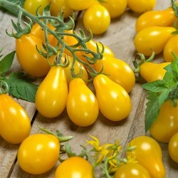 De kleinste tomaatjes in ons sortiment noemen we kerstomaatjes of pingpongtomaatjes, naargelang de grootte. Enkele variƫteiten zijn langwerpig of hartvormig en krijgen navenant een iets andere benaming. Sommige zijn zelfs oorspronkelijke, wilde soorten. De meesten smaken extra zoet, een enkeling heeft een zoetzure smaak. Kerstomaten liggen het dichtst bij de oorspronkelijke soorten, wellicht daardoor zijn ze o.h.a. beter bestand tegen de gevreesde aardappelziekte. Dit oude, Duitse ras is heel succesvol voor zowel de kas- als de buitenteelt. De planten kunnen wel 2 m hoog worden. Geef ze een stevige steun, want de brede trossen dragen wel tot 200 vruchtjes per tros! De gele vruchtjes hebben een druppel- of peervorm, zijn zoet en mild-aromatisch. Als de eerste nachtvorsten zich aandienen, dan kan je de laatste trossen oogsten en binnen ophangen om na te rijpen.