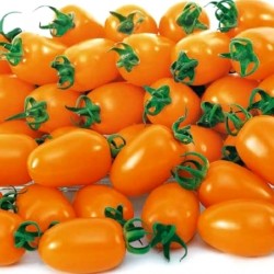 De kleinste tomaatjes in ons sortiment noemen we kerstomaatjes of pingpongtomaatjes, naargelang de grootte. Enkele variëteiten zijn langwerpig of hartvormig en krijgen navenant een iets andere benaming. Sommige zijn zelfs oorspronkelijke, wilde soorten. De meesten smaken extra zoet, een enkeling heeft een zoetzure smaak. Kerstomaten liggen het dichtst bij de oorspronkelijke soorten, wellicht daardoor zijn ze o.h.a. beter bestand tegen de gevreesde aardappelziekte. Dit helderoranje ovaalronde (olijf)tomaatje is heerlijk zoet en geeft een enorme opbrengst! Dit kwekersras is goed ziektebestendig. Gewicht ongeveer 22 gram per vruchtje.