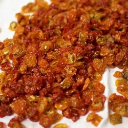 De kleinste tomaatjes in ons sortiment noemen we kerstomaatjes of pingpongtomaatjes, naargelang de grootte. Enkele variëteiten zijn langwerpig of hartvormig en krijgen navenant een iets andere benaming. Sommige zijn zelfs oorspronkelijke, wilde soorten. De meesten smaken extra zoet, een enkeling heeft een zoetzure smaak. Kerstomaten liggen het dichtst bij de oorspronkelijke soorten, wellicht daardoor zijn ze o.h.a. beter bestand tegen de gevreesde aardappelziekte. Bestomaatjes staan heel dicht bij de wilde tomaat en geven een overvloed aan zeer kleine vruchtjes met een heerlijk zoete smaak. Ze hangen met 15 tot 20 in één trosje. Het aardige van ‘Krentje’ ondervond onze kweker: hele trosjes laten zich vrij makkelijk drogen, gewoon op gaas, onder een handdoek of op een droge plek in huis. De gedroogde tomaatjes kunnen worden bewaard of ingevroren of op olie gezet...! De klimmende planten dragen ontelbare vruchtjes en groeien vrijwel ziektevrij buiten maar geven in de kas uiteraard een nog grotere oogst.