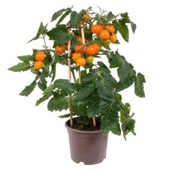 Dit dwergtomaatje groeit met donkergroen blad en helderoranje vruchtjes alsof het sinaasappeltjes zijn... alleen al voor de sier een aanrader! Gelukkig smaken de vruchtjes ook nog verrukkelijk en pluk je naar believen verse kerstomaatjes voor je salades of broodjes.