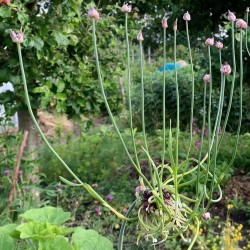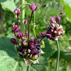 Een bizar gevormde bloem, doordat de broedbolletjes snel uitlopen. Deze selectie uit de wilde Slangenlook geeft “bloemen”, die bestaan kronkelig vergroeide stengeltjes. De stelen staan stevig op 100-120 cm hoogte, waardoor de bloemen zich prima lenen voor de vaas. Bloeitijd: juni-juli. De bollen en de bloemen zijn eetbaar, vergelijk de smaak van de bol met een milde knoflook!