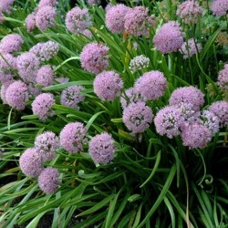 Sierlijk en eetbaar uitje, de opbouw lijkt op een de knoflook-bieslook, de bloei is zachtlila, hoogte 50 cm. Zowel de knoppen, de bloemen, het blad en de bolletjes zijn eetbaar, opvallend is het prettige knoflookaroma. De plant komt elk jaar terug, geef ze een vochtige, zonnige plaats.