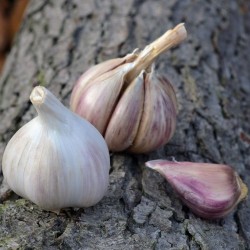 ZaaimethodeKnoflook kan jaarrond worden geplant, als de teentjes in goede conditie zijn. De meeste rassen zijn in herfst en winter op voorraad. Wij voeren rassen, die succesvol in Nederland worden geteeld. Meteen na ontvangst de bol openbreken en de tenen in de grond poten: 2-5 cm diep en 10-20 cm uit elkaar. In het najaar geplant staat de knoflook in februari (of eerder) al boven en in juni-juli kunnen ze geoogst worden. Later geplant betekent uiteraard latere oogst. Oogsten is geen verplichting, knoflook is winterhard en kan ook gewoon in de grond blijven. Na oogsten het loof vlechten zoals je knoflook wel eens in de winkel ziet en de bollen in de zon drogen. In de kamer zijn ze soms wel een jaar te bewaren! De teelt is niet moeilijk, maar goede tips vind je in onze teeltbeschrijving in pdf (zie onderaan de website). Knoflook schijnt luizen in b.v. rozen te weren, het proberen waard!
