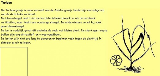 ZaaimethodeKnoflook kan jaarrond worden geplant, als de teentjes in goede conditie zijn. De meeste rassen zijn in herfst en winter op voorraad. Wij voeren rassen, die succesvol in Nederland worden geteeld. Meteen na ontvangst de bol openbreken en de tenen in de grond poten: 2-5 cm diep en 10-20 cm uit elkaar. In het najaar geplant staat de knoflook in februari (of eerder) al boven en in juni-juli kunnen ze geoogst worden. Later geplant betekent uiteraard latere oogst. Oogsten is geen verplichting, knoflook is winterhard en kan ook gewoon in de grond blijven. Na oogsten het loof vlechten zoals je knoflook wel eens in de winkel ziet en de bollen in de zon drogen. In de kamer zijn ze soms wel een jaar te bewaren! De teelt is niet moeilijk, maar goede tips vind je in onze teeltbeschrijving in pdf (zie onderaan de website). Knoflook schijnt luizen in b.v. rozen te weren, het proberen waard!