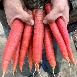 Veredeling van het sterke ras Nantes, dat in elke grondsoort (ook zware klei) goede resultaten geeft, heeft geleid tot deze dieprode variëteit. De kleur gaat hand in hand met een hoger caroteengehalte, gezonder dus en meer aroma dan de staandaard Nantes.