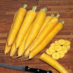 De eerste vroege gele wortel met een hoge opbrengst. De prachtige, kanariegele wortels (kwekerskwaliteit!) zijn lekker zoet, tamelijk groot en heerlijk om rauw te knabbelen.