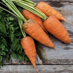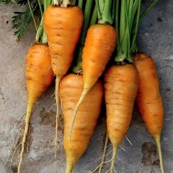 Met enige fantasie zie je een hartvorm in deze grappige, stompe wortels. Zelden zal je zulke (in verhouding) brede peen zien: 12-15 cm lang en maar liefst 7-10 cm breed! Dit zeer goed smakende (zoet en mild) en lang te bewaren ras stamt uit ongeveer 1887 en is in Frankrijk ontwikkeld, daar ook wel ‘Guerande’ genoemd. Deze wortel groeit succesvol in de zwaarste grond!