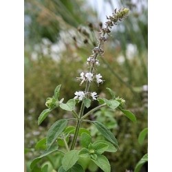 Een zeldzaam aangeboden en zeer geurige soort! Nauw verwant aan Ocimum gratissimum krijgt deze overblijvende soort ook een houtige basis. Uiteraard moet de plant wel ‘s winters naar binnen (20̊C). In 1 jaar groeit deze Afrikaanse basilicum tot 1 m hoogte en het zijn de bloemetjes, die een zalige kruidnagel- tot kamfergeur verspreiden. De bereiding tot aromatische olie in Afrika is een belang-rijke toepassing! Ook in een kruidige en geneeskrachtige thee maar uiteraard als smaakmaker in gerechten een topper.