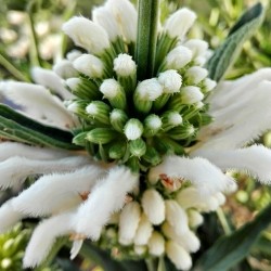 340910 DAGGA, WILDE WITTE 'Alba' / 'Albiflora'ook wel genoemd: MILDE WIET, DUIVELSTABAK, LEEUWENOOR, LEEUWENSTAART (Engels: Wild Dagga, Lion's Ear)(Leonotis leonurus) |