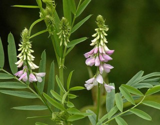 Vanuit Zuid-Europa is deze prachtige, zeer winterharde plant hier en daar verwilderd in onze natuur: een stinzeplant dus. Sierlijk geveerd blad met bovenin trossen van witte, roze of blauwe lipbloemen. Ideaal voor de informele- of wildtuin. Galega is Grieks voor “melk te voorschijn brengen”. Zolang de plant niet bloeit stimuleert de plant melkproductie bij kraamvrouwen maar ook bij dieren. Sinds de oudheid wordt Galega al gebruikt, ook voor verlaging van de bloedsuikerspiegel en ter bevordering van spijvertering en vochtafdrijving. Let op: tijdens en na de bloei wordt de plant ongeschikt en zelfs giftig!