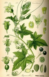 345540 HEGGERANK, WITTEook wel genoemd: WILDE HOP (Engels: White Bryony, Wild Hop, English Mandrake, Kudzu of the Northwest, Devil’s Turnip)(Bryonia alba) |