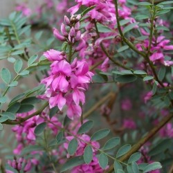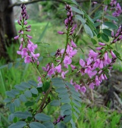 Prachtige, ranke plant met fijn geveerd blad en kleine trosjes roze lipbloempjes. De bladeren zijn de bron voor fraaie kleurstoffen, variƫrend van blauwe tinten tot groen, grijs en bruin, voor diverse extract-methodes zie de pdf op de website. Houd rekening met vorstgevoeligheid, het is een Australische plant.