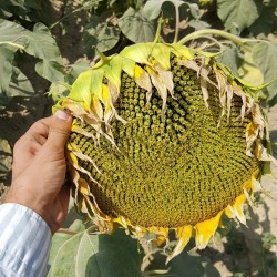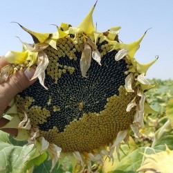Deze zonnebloem is speciaal gekweekt voor de professionele productie van zonnebloemolie, maar... als sierplant gooit deze soort ook hoge ogen! Verder is het een graag gebruikt ras voor de teelt van jonge scheuten als zonnebloemkiem. Met normale voeding kunnen ze doorgroeien tot 2 m, doe je extra je best dan is 3 m wel mogelijk. Deze variëteit geeft in een veld(je) een hoog "Van Gogh-gehalte"! In zuidelijk Europa (vanaf de lijn midden-Frankrijk) en andere landen rond de Middellandse Zee worden zonnebloemen veel geteeld voor de olie. Dit ras biedt een hoog oliegehalte. Maar: wat dacht je van een alternatieve haag...? Uitgebloeide bloemen gaan hangen en zijn in de herfst een lekkernij voor de vogels, gepelde zaden zijn ook voor ons een gezonde snack!