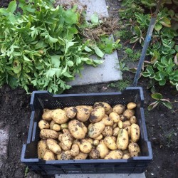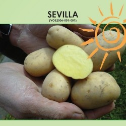 Deze aardappel van Niek Vos hebben we in 2016 gratis mogen uitdelen om ze uit te proberen. Velen stuurden positieve ervaringen naar ons toe, dus het besluit om dit ras op te nemen (eerst bekend onder ‘Vos-2006') was niet moeilijk! Hoewel de aardappel ook zeer goed vroeg kan worden geoogst (en dan heerlijk vast van structuur is) wordt de smaak voller en complexer bij goede afrijping. Het meest opvallend is de zeer hoge resistentie tegen Phytophthora (aardappelziekte) waardoor biologische teelt van dit ras zeer goed mogelijk is. Voor de professional is belangrijk te weten dat dit ras weinig stikstof nodig heeft. De veelzijdigheid is opvallend, ze rotten niet snel bij extreme regenval en het viel veredelaars in Sevilla (Spanje) op, dat de oogst hoog was ondanks stress van droogte, ook zeer goed geschikt dus voor warme landen. Kortom: Sevilla is een mooie geel-vlezige aardappel met gladde schil en goede smaak. De opbrengst is groot, ze oogsten dichtbij de plant en ze bewaren zeer goed. Deze kleiaardappel teelt ook goed op zandgrond. Het is een iets bloemige aardappel, dus kookt niet stuk en frituurt super. Overigens: vroeg geoogst zijn ze veel vaster, als je dat lekkerder vindt... De naam Sevilla heeft Niek gekozen omdat de stad Sevilla rond 1500 de havenstad was waar de aardappel het eerst arriveerde uit Zuid-Amerika. Een klant berichtte ons: Zeer tevreden over Sevilla aardappel. Goede smaak en consistentie. Geeft gekweekt op de veenkoloniale dalgrond een zeer kruimige, lekkere aardappel. Heb veel Phytophthora-resistente aardappelrassen uitgeprobeerd, maar deze spant de kroon! Bol- of knolmaat28/35 (± 38-40 knollen per kg) Leveringsmaandenfebruari t/m juli