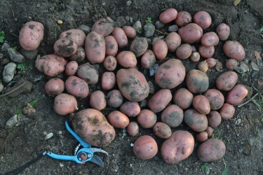 Een prachtige, moderne aardappel met veel toepassingsmogelijkheden. Ondanks de vroege oogst is deze zeer goed te bewaren! De iets ovaalronde knollen hebben een helderrode schil met lichtgeel knolvlees. Jong gegeten zijn ze tamelijk vast, bij langere bewaring worden ze bloemiger. Ons smaakpanel roemde het fijne aroma. De knol is goed resistent tegen Phytophthora en je kan een zeer grote oogst verwachten. ‘Tiamo’ kan ook in warmere landen rond de Middellandse Zee geteeld worden. Een klant mailde ons: “Hierbij een foto (met snoeischaar) van de oogst van 5 planten Tiamo aardappelen. Het zijn harde, vastkokende aardappelen die dicht onder de oppervlakte zitten. De smaak is fantastisch, evenals het schilgemak.” Een klant meldde ons, dat de Coloradokever (ondanks aantastingen elders) van dit ras afbleef!