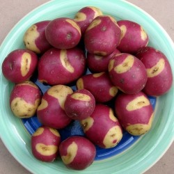 (2011) Ouders: Stroma x Zaailing van een Solanum phureja. Een bijzondere verschijning: warmrode schil met grote crèmekleurige vlekken rond de ogen. De knollen zijn meestal vrij klein en rond. Schrob ze schoon en kook of rooster ze met schil en al voor een prachtige aardappelschotel! De vrij vaste structuur en uitstekende, bijna zoete, boterachtige, kastanjesmaak verwennen de tong! Middentijds rijpend, Schots ras van Zela J. Doig.