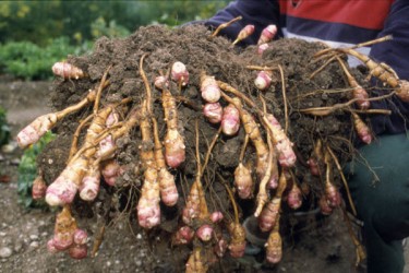TeeltPlanttijd tijdens de rustperiode van de plant, dus van november - april. Later verplanten kan alleen met planten die opgepot zijn. Plantafstand 75x30 cm. Oogst vanaf de tijd dat de plant bovengronds afgestorven is. Oogst alleen wat u wilt eten, de rest kan in de grond blijven of in een kist worden ingekuild met zand of aarde.