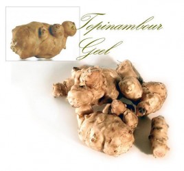 De aardpeer is een oersterke groente is winterhard, zet de knollen aan de rand van uw groentetuin. De plant wordt wel 2 m hoog, gebruik ze als windscherm maar let ook op de schaduwwerking. Halverwege het groeiseizoen mogen ze teruggesnoeid worden, voor een wat compactere groei en tegen het omwaaien, de oogst wordt er wel iets minder door. Laat in het najaar oogst u de smakelijke knollen, die zelfs rauw goed smaken. Plantafstand 75 x 30 cm benodigd 1,5 - 2 kg voor 10 m². Tip: plaats een bleekpot over de plant in het voorjaar voor een malse, gebleekte eerste groei! Blancheren, koken of fijngesnipperd in een frisse voorjaarssalade smaakt dit vitaminerijk gewasje bitter en toch zoet. Voeg tijdens de bereiding een snuifje zout toe om de vrij bittere smaak te voorkomen. Geel-witte aardpeer die in augustus/september bloeit en vroeg afrijpt. Oogstbaar vanaf tweede helft oktober. Hoogte ongeveer 2 meter. De oogst is vrij groot en de knollen zijn de grootste van ons sortiment! De grote knollen zijn daarbij langwerpig en niet zo grillig van vorm, dus perfect om mee te kokkerellen. Deze variëteit vormt weinig lange uitlopers met kleine knolletjes, geen woekeraar dus. White Super Gigant bloeit gegarandeerd elk jaar vanaf juli of augustus.