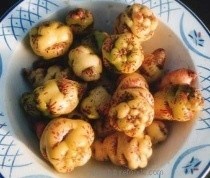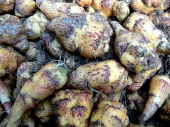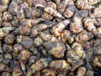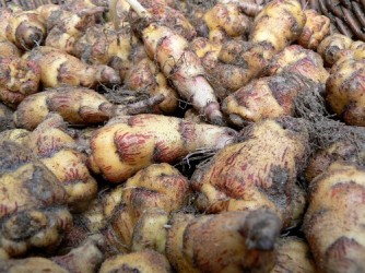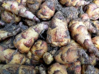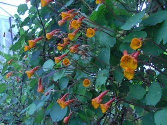 Een typisch knolgewas uit het Andesgebergte (Peru), die ook nog eens uitgroeit tot een fantastisch sierlijk gewas! Bij ons is de plant in toenemende mate winterhard, hoewel bij vorst knollen en blad goed beschermd moeten worden. Culinair komt steeds meer aandacht voor dit veelzijdige gewasje: de knollen zijn rauw te snipperen door de sla voor een pittige touch. Het blad en de bloemen hebben een zachte tuinkerssmaak en zijn een sieraad in elke salade. Na enige dagen onder zonlicht worden de knollen wat minder pittig. Verder kunnen de knollen menig hutspotje of roerbakgerecht op smaak brengen. De rankende plant heeft gelobd blad, dat verder sterk lijkt op het blad van het familielid: de Oost-Indische Kers. ‘Ken Aslett’ geeft prachtige bloei vanaf september geel met rode trompetbloemen. Typerend voor dit ras zijn de crèmegele knolletjes met rode streepjes onder de ogen. Oogst de knollen laat, ze ontstaan aan het eind van het groeiseizoen.