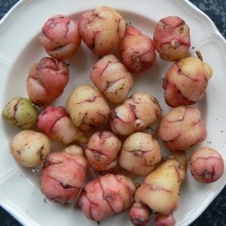 Heerlijke, bijna bolronde knolletjes in lichtroze kleur, fris en zoetzuur van smaak. Ze zijn zowel rauw door salades als gekookt, in de roerbakpan of gefrituurd te verwerken en eten. Jonge scheutjes en blaadjes van de oca zijn sierlijk en lekker pittig in salades!