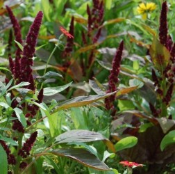 Deze vrij compacte variƫteit (40-60 cm) geeft stevige, dikke, donkerrode bloemtrossen met donkergroen blad als basis. Zomer en herfst staat deze stevige plant te pronken en laat zich door de diepe kleur heel goed combineren. Het blad is overigens eetbaar.