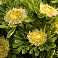 Dat de naam wat lomp is voor deze sierlijke bloem kunnen we niet helpen, de belangrijkste kleur klopt in elk geval: citroengeel hart met een prachtige, groene bladkrans rondom. Het "bloemblad" (lintbloemen) ontbreekt! Heel apart en sterk op de vaas, hoogte 60cm.