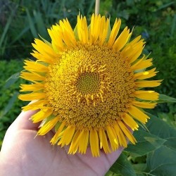 Ongekende populariteit geniet de zonnebloem op dit moment. We spelen daar op in door een enorm groot sortiment aan te bieden: kies maar uit! Wat een bijzondere zonnebloem! Op een hoogte van ongeveer 2 m gaan de planten bloeien met langs de rand gespleten, warmgele bloemblaadjes het hart bestaat uit een buitenrand van buisbloempjes, die langs de binnencirkel (het echte bloemhart) iets uitgroeien tot bloemblaadjes. De binnencirkel bevat het geliefde stuifmeel, waar onze vrienden de bijen zo dol op zijn! Na de eerste bloei ontwikkelen zich zijtakken met meer bloemen.
