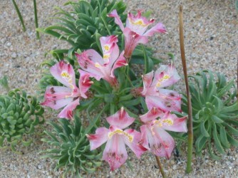 Een compacte soort (25-30 cm) met opvallend grote, lichtroze bloemen. Natuurlijk ontbreken de sierlijke kastanjebruine spikkels niet, vaak in wit met gele velden. De planten gedijen goed op een droog of zeer goed gedraineerde plek in de tuin en verrassen elke zomer weer met een explosie van kleur!