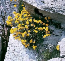 Vroegbloeiende kruipplant met felgele bloemtrosjes. Hoogte 30 cm. Verdraagt droogte.