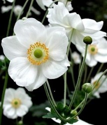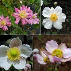 Nog even genieten van de tuin in de nazomer tot in de herfst... Aan de herfstanemonen zal het niet liggen. Het forse bladdek is de basis voor stevige, 60-120cm hoge stengels (waaien niet om!). De open bloeiwijze met pollenkrans en ronde stamper is typisch Anemoon nietwaar? Het mengsel bevat de kleuren wit, roze en zalm met tussentinten.