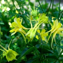 Heldere, lichtgele bloemen met lange sporen aan stevige, 80 cm hoge stengels. Deze aantrekkelijke akelei bloeit van juni-augustus en zaait makkelijk uit!