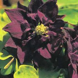Zo’n diepe, koninklijke kleur zie je zelden: fluweel purper! Wel eens een dubbelbloemige clematis gezien? Deze akelei heeft er veel van weg: zonder sporen en wijd open. Hoogte 60 cm.
