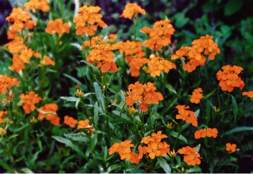 Helder oranje bloemtrosjes op ranke 40 cm hoge stengels. Ze bloeien vroeg: van maart-juni en geuren heerlijk zoet, een echte ouderwetse tuinplant. Tweejarig, dus de bloei is het jaar na zaaien.