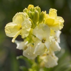 Muurbloemen danken hun naam aan de spontane ontkieming op afbrokkelende (sloop)muren en/of de veelvuldige aanplant aan de voet van een zonnige muur. Ze houden dus van zon en vooral niet te nat! Op zo’n plek zaaien ze zich uit, de oude planten op tijd terug knippen en iets aanaarden geeft ook vaak hergroei. Dankzij deze Sugar Rush-serie kunnen we nu zaad aanbieden van bijzondere kleuren muurbloemen. Deze ‘Primrose’ is enkelbloemig en citroengeel van kleur: zeldzaam mooi! Heerlijk zoet geurend en in de zomer bloeiend, de plant bloeit het langst als de uitgebloeiden worden weggeknipt en als de plant regelmatig vocht krijgt. Compacte groei: 20-25 cm.