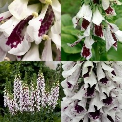 Een bijzondere vingerhoedskruid! De roomwitte bloemen hebben een diepwijnrood centrum, dat extra zichtbaar is, omdat de (normaal buisvormige) bloemen met een “split” zijn opengewerkt. Het geeft een luchtig en verrassend effect! Hoogte 120-140 cm, 3-5 bloemstengels per plant. Bij zeer vroege zaai (januari-maart) is er kans op bloei hetzelfde jaar.