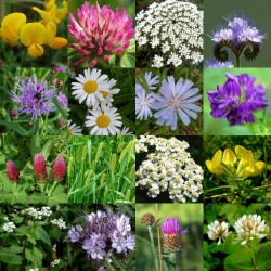 De samenstelling: 12% Gewone rolklaver 10% Margriet 10% Wilde peen 6% Knoopkruid 7% Gewoon duizendblad 6% Cichorei 4% Luzerne 3% Rode klaver 3% Witte klaver 15% Inkarnaatklaver 10% Boekweit 4% Phacelia 10% Timotheegras De dosering is 1 kg voor 250 m², ruimer zaaien mag ook: 500-1000 m² ZaaimethodeZaaien: maart-juni. Eerst de grond goed fijn harken, vervolgens de zaden (evt. vermengd met droog zand) gelijkmatig uitstrooien en licht inharken. Tenslotte aandrukken met plank, hand of wals. Leveringsmaandenhet gehele jaar