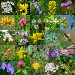 De bloeiende planten zijn: Duizendblad, Welriekende Agrimonie, Barbarakruid, Akkerklokje, Knoopkruid, Gewone Hoornbloem, Glad Walstro, Graslathyrus, Veldlathyrus, Herfstleeuwetand, Wilde Margriet, Gewone Rolklaver, Polei, Smalle Weegbree, Brunel, Grote Ratelaar, Veldzuring, Grote Pimpernel, Hemelsleutel, Gele Morgenster en Rode Klaver. Dit zelfde mengsel, maar dan met 20% wilde grassen in 3 soorten, vind je onder nummer 613040. Dosering: 2-4 gram voor 1 m². ZaaimethodeZaaien: maart-juni. Eerst de grond kaal maken en goed fijn harken, vervolgens de zaden (evt. vermengd met droog zand) gelijkmatig uitstrooien en licht inharken. Tenslotte aandrukken met plank, hand of wals. Leveringsmaandenhet gehele jaar