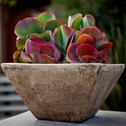 Rond het jaar 2000 werd deze plant een enorme hype en sindsdien krijgen cactussen en vetplanten weer helemaal de verdiende plaats in de vensterbank, nu vooral vanwege de strakke vormen van de planten. De dikke, ronde bladeren vormen een sierlijke toef en zijn licht grijsgroen van kleur met langs de bovenrand een prachtige rode verkleuring. Hoe meer licht en zon hoe dieper de rode kleur. Jong blad beschermt zich met een wit waslaagje... Na 5 jaar kan een plant gaan bloeien, de zaden zijn zeer kiemkrachtig en zorgen dan weer voor nageslacht.
