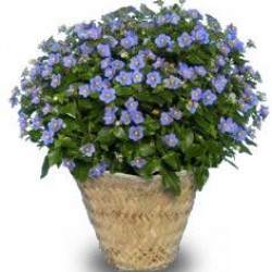Grappig kamerplantje, gemakkelijk te telen. De groeivorm is bolrond, tot een doorsnee van 30 cm. Tussen de massa glanzende blaadjes verschijnt een grote massa ronde, helderblauwe bloempjes met een iets uitstekend geel hartje. Zaaien 1-5 geeft bloei 4-9.