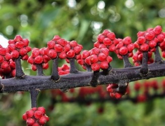 Deze sterke, handvormige bladplant wordt breed en kan tegen droge lucht: een sterke kamerplant dus. De oudere planten krijgen een fantastische bloeiwijze, lange aren, gerangschikt als een waaier, met honderden rode bloemetjes. 's Zomers mag de plant naar buiten.