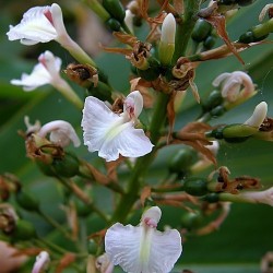 Blauwe gember dankt zijn naam aan de prachtige blauwe bessen, die na de fraaie witte bloei ontstaan. Deze tropische plant wordt wel 3 m hoog en houdt van een warme, vochtige omgeving op een half beschaduwde plaats. De gedroogde vruchtjes geven een heerlijke pittige smaak aan gerechten, het centrum van de jonge scheuten smaken als de echte gember. De wortels zijn iets aardser, maar toch voldoende gember-achtig.