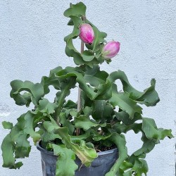 Een bladcactus zonder stekels, met breed en dik, decoratief krullend blad. Een plant om in de zomer buiten te laten groeien en dat ‘s winters in een koele kamer binnen wordt gezet. De sierlijke, witte bloemen verschijnen in de nacht, de moeite waard om voor wakker te blijven... Na de bloei ontstaan ronde, rode vruchten, die eetbaar en zeer sappig en smakelijk zijn.