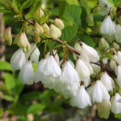 Deze middelhoge boom dankt zijn naam aan de trosjes spierwitte klokvormige bloemetjes, die in het voorjaar bloeien. Na deze overvloedige bloei ontstaan de gevleugelde vruchtjes, die er de hele winter aan blijven hangen. De eerste 10 jaar kan je genieten van een sierlijke struik, na 20 jaar groeit deze uit tot een middelhoge boom. ZaaimethodeZaaien: jaarrond, week de vruchten een etmaal in warm water en plant ze op een plekje in de tuin, die je niet vergeet. De kieming kan 1-2 jaar duren, want de zaden zijn tamelijk hard. Leveringsmaandenhet gehele jaar