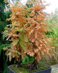 Een bladverliezende naaldboom, die in vol bladornaat wat op de taxus lijkt. In de herfst kleurt de boom prachtig geel en rood! Tot 1944 dacht men dat deze boom uitgestorven was, 3 jaar ervoor had men het geslacht net als fossiel op naam gebracht… In Zuid-China bleek de boom echter nog voor te komen. De eerste groei is sterk: in enkele jaren is de boom 20m hoog en kan uiteindelijk ruim 40 meter worden. Een groeikrachtige boom is altijd zeer sterk en dus ook geschikt als BONSAI. Wel het liefst tot een grotere maat kweken, bv tot 1m hoog.