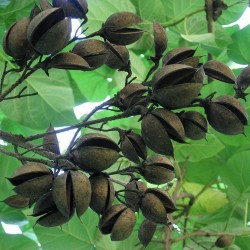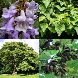 Een bijzondere, Chinese boom, die behoorlijk winterhard is in ons land, zeker naarmate de boom ouder wordt. De teelt in een grote pot of metselkuip is voor kleinere tuinen een goede optie. Groot, hartvormig blad, aan de onderzijde behaard. De bloemtros is de beloning na een zachte winter: een opstaande tros met naar benedengerichte trompetbloemen, lichtviolet met gele strepen in de keel.