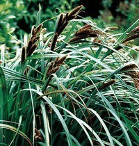 Indrukwekkende, vrij zeldzame zegge. Het lange blad heeft een in de halfschaduw (de beste standplaats) een blauwgroene glans. Vanaf juniverschijnen de vrij grote, donkerbruin tot zwarte bloeiaren. Hoogte 90cm. Zet zegge op een vochtige plaats, niet terugknippen. Tegen strenge vrieskou beschermen.