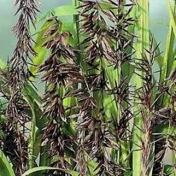 Zeer gemakkelijk te telen, dit siergras van 60-120cm hoog (hangt van voeding en zon af) Bronsbruine bloei-aren steken fraai af tegen frisgroen, tamelijk breed, lancetvormig blad.